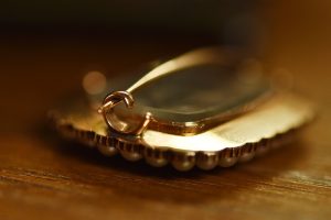 As I mentioned, it has been exceptionally well cared for and remains in excellent condition. One tiny gold ring is visible at the top edge of the frame. At one time, there was most likely a bail here so that it could also be worn as a pendant. Though it would not be original, another ring or a bail could be added with no problem. This one-of-a-kind jewel now has an incredible price drop. If you’ve been looking for something special to add to your collection, this just might be it. It’s available on our site or in the store.